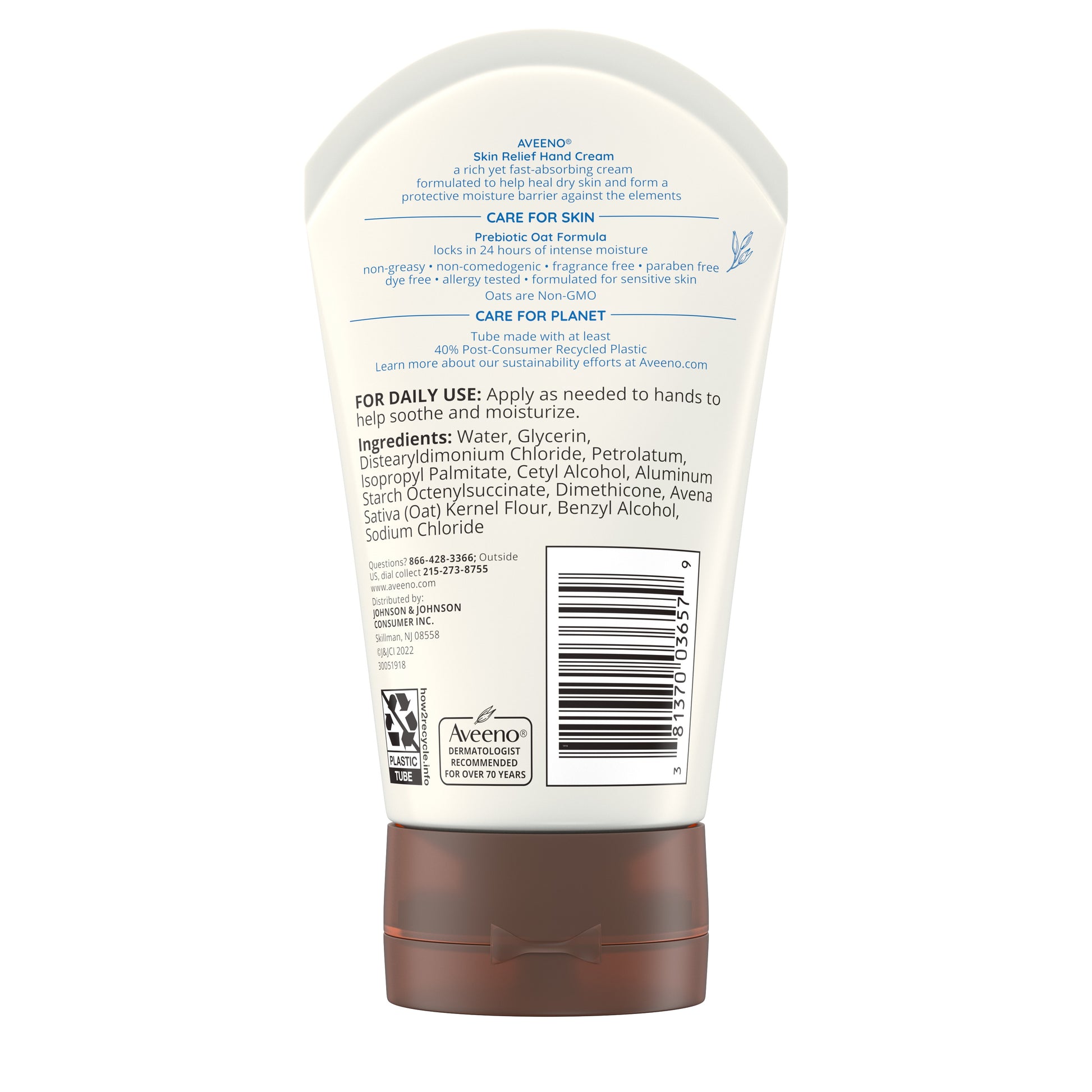 3.5-ounce tube of Aveeno Skin Relief Intense Moisture Fragrance-Free Hand Cream with soothing Prebiotic Oat lasts through handwashing and softens and smooths dry hands02